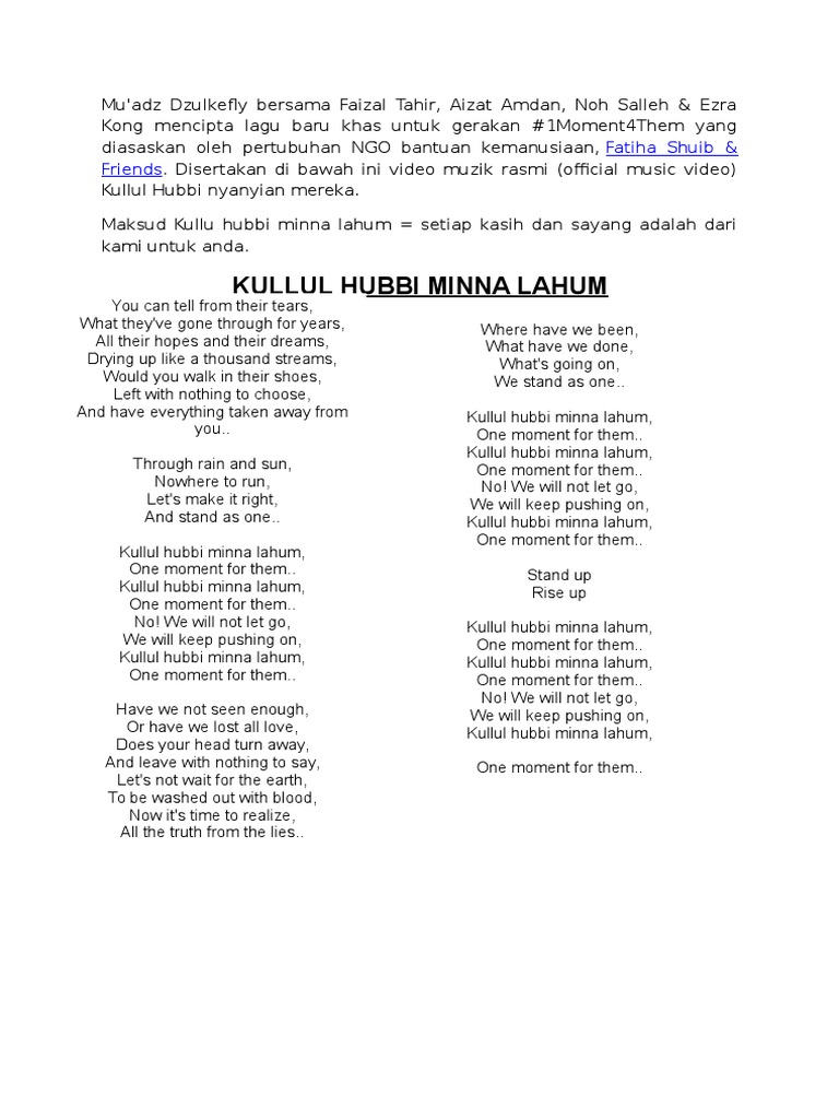 Faizal Tahir Kullul Hubbi 1moment4them Lyrics Genius Lyrics